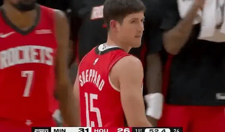 二年级生谢泼德很努力去填补,但还是太嫩了。而且谢泼德也在被研究,过去一段时间表现惨淡。今天倒还行,谢泼德本场仅出战18分钟,却9中5高效砍下14分2助攻2抢断。特别是在火箭落后11分时,眼看就要崩盘的关键时刻,正是谢泼德连续命中3记三分,如同一针强心剂,迅速将分差迫近,为火箭末节的逆转保留了希望。如果没有这波爆发,火箭很可能在首节结束前就缴械投降。谢泼德在过去几场比赛中其实状态相当低迷,投篮手感冰冷、决策也显得急躁,经常出现强行出手或防守漏人。